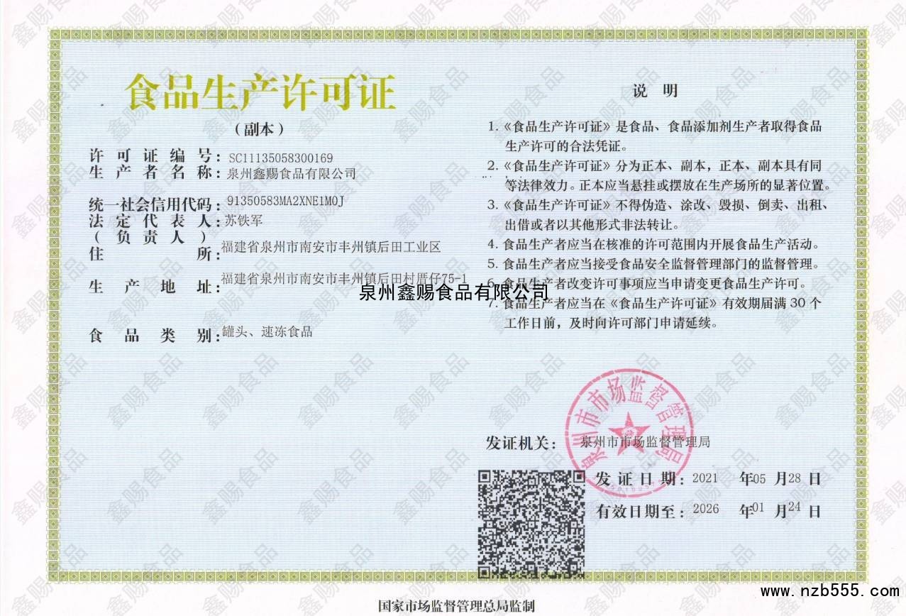 首頁 > 榮譽(yù)資質(zhì) > 泉州鑫賜食品有限公司