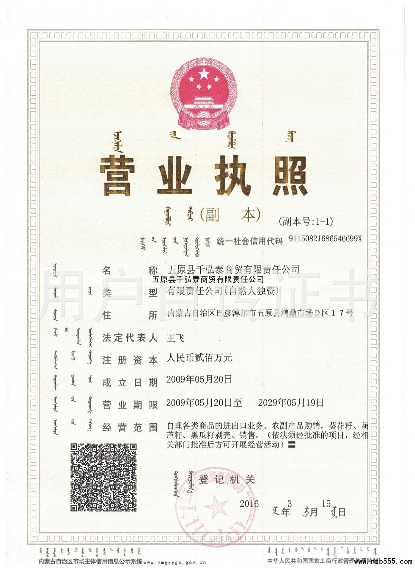 五原縣千弘泰商貿有限責任公司