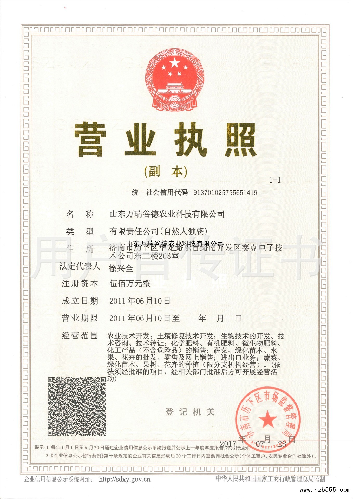 首頁(yè) > 榮譽(yù)資質(zhì) > 山東萬(wàn)瑞谷德農(nóng)業(yè)科技有限公司