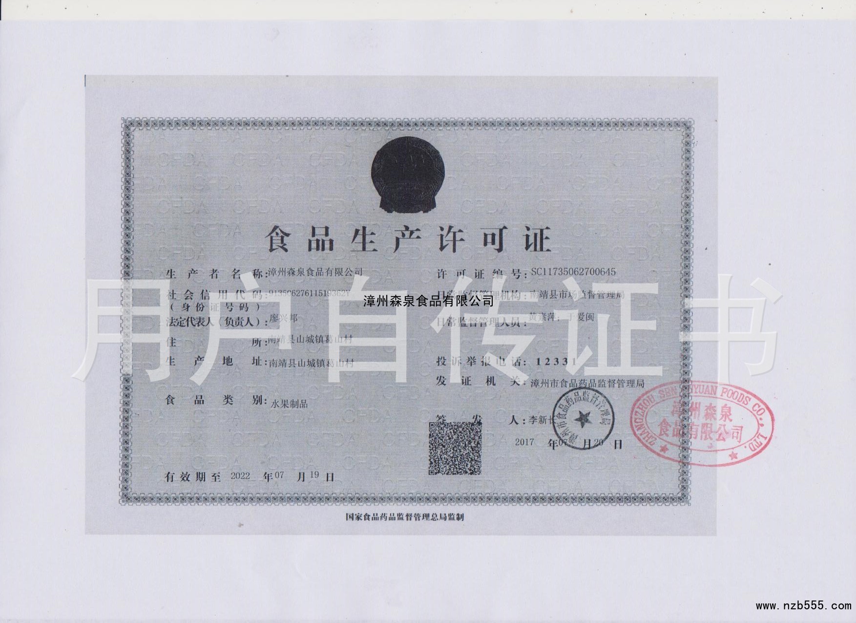 榮譽(yù)資質(zhì) 食品生產(chǎn)許可證(除乳制品、嬰幼兒配方乳粉、酒之外的生產(chǎn)許可證)