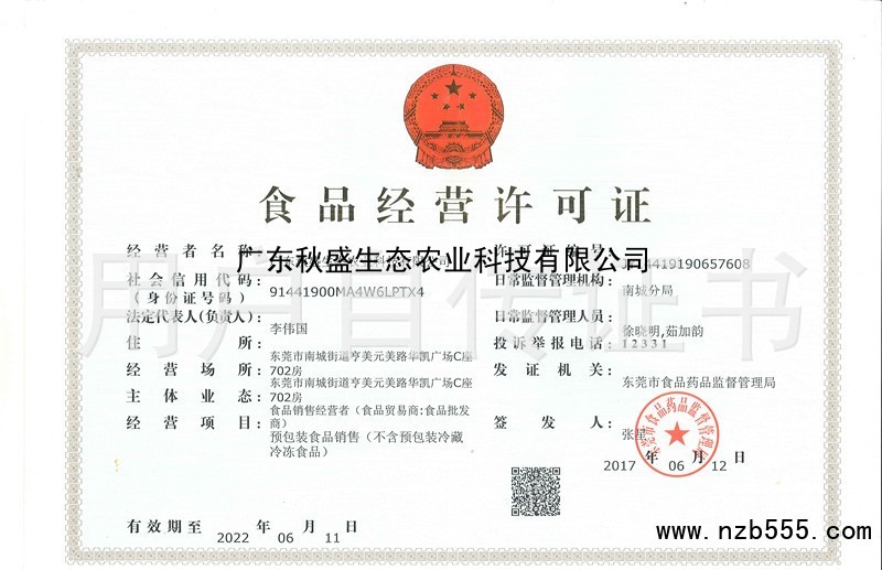 食品經營許可證(除乳制品、嬰幼兒配方乳粉、酒之外的生產許可證)