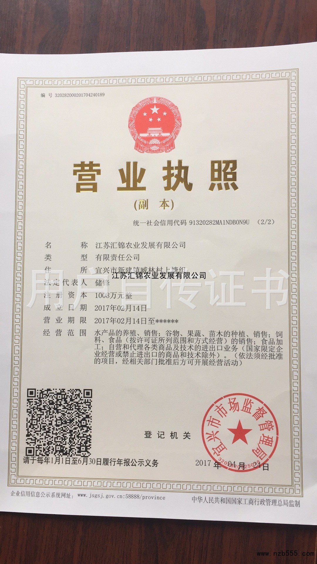 | 發(fā)證機(jī)構(gòu): | 宜興市市場(chǎng)監(jiān)督管理局 | 發(fā)證時(shí)間 : | 2017-04-24 |