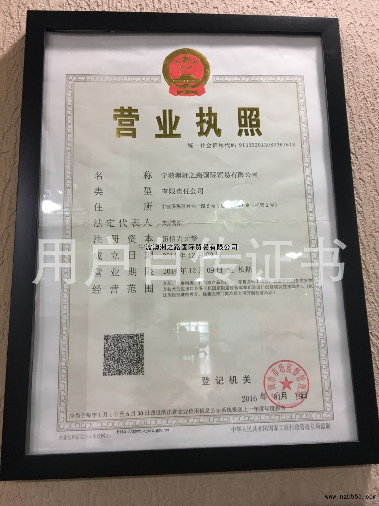 榮譽(yù)資質(zhì) 寧波澳洲之路國際貿(mào)易有限公司