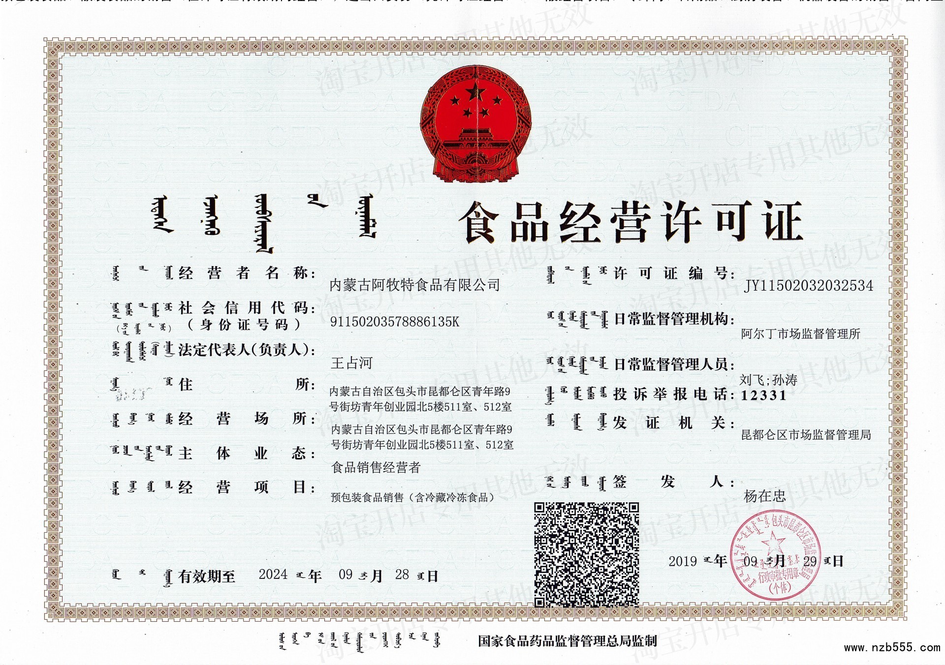榮譽(yù)資質(zhì) 內(nèi)蒙古阿牧特食品有限公司