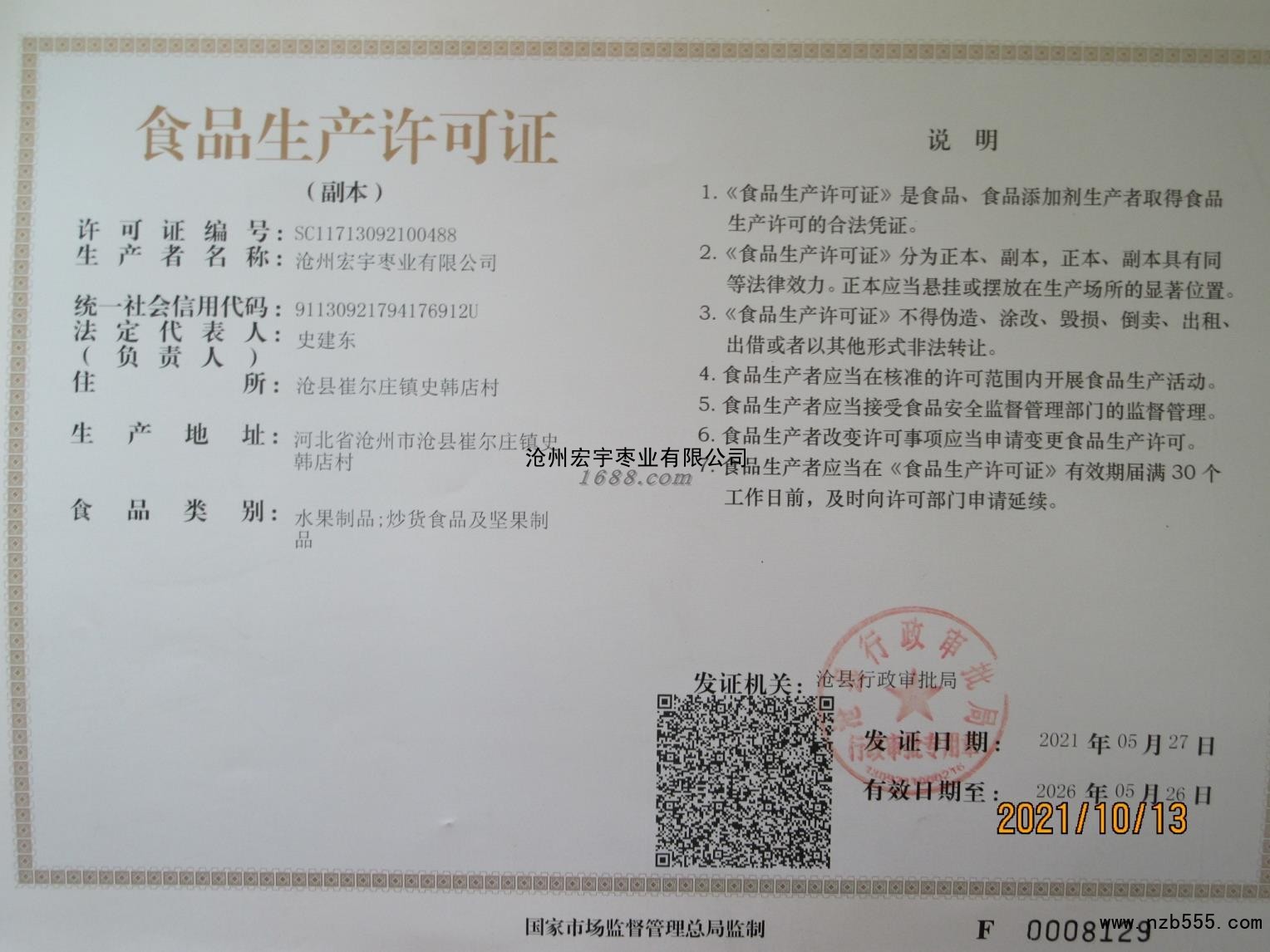 榮譽(yù)資質(zhì) 滄州宏宇棗業(yè)有限公司