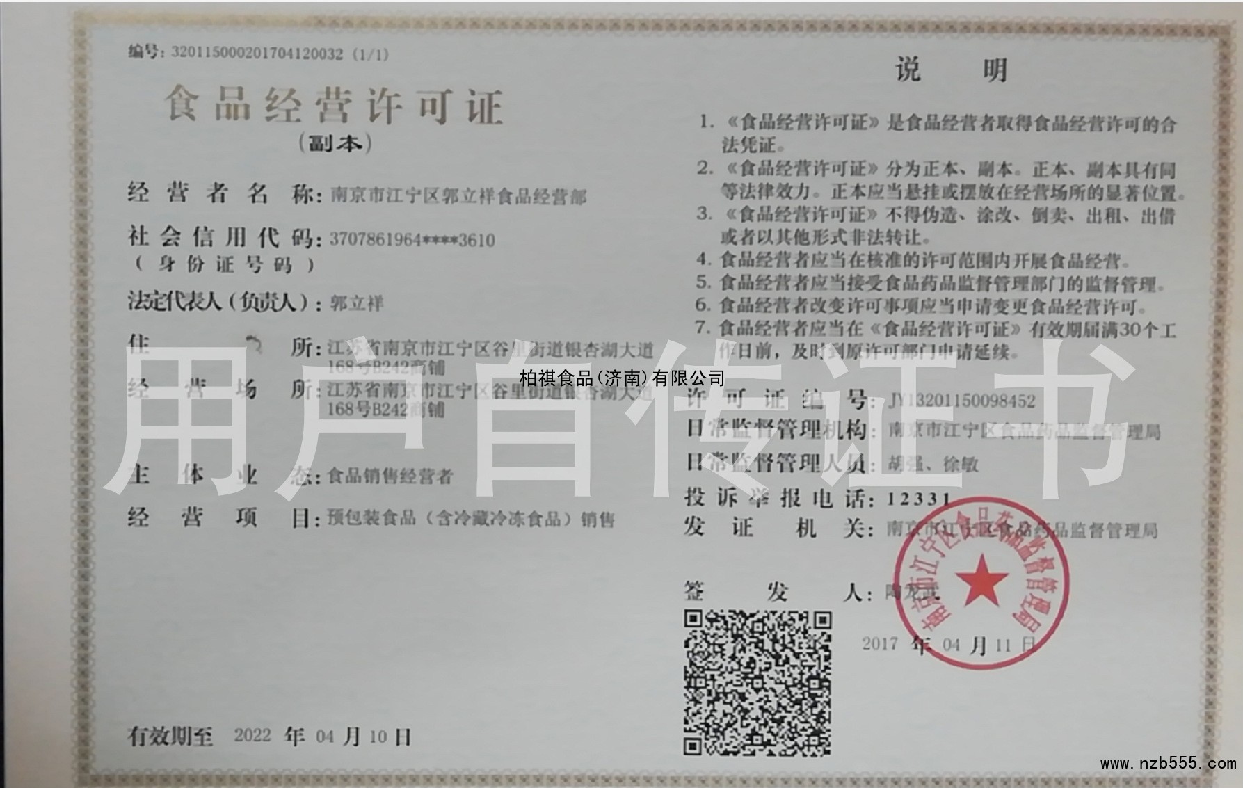 南京市江寧區郭立祥食品經營部