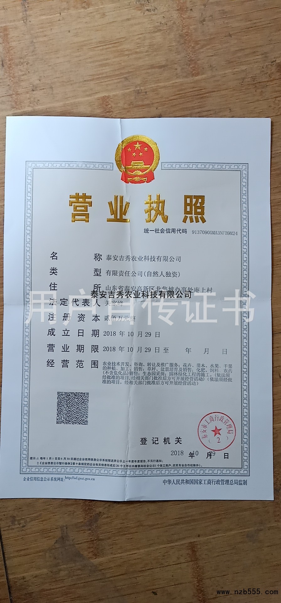 榮譽(yù)資質(zhì) 泰安吉秀農(nóng)業(yè)科技有限公司