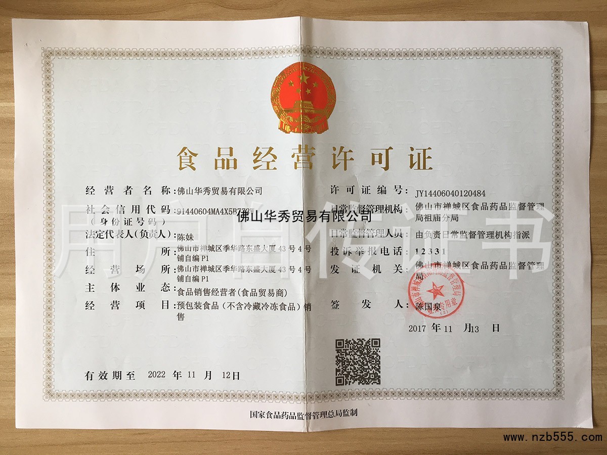 食品流通許可證(除乳制品、嬰幼兒配方乳粉、酒之外的流通許可證)