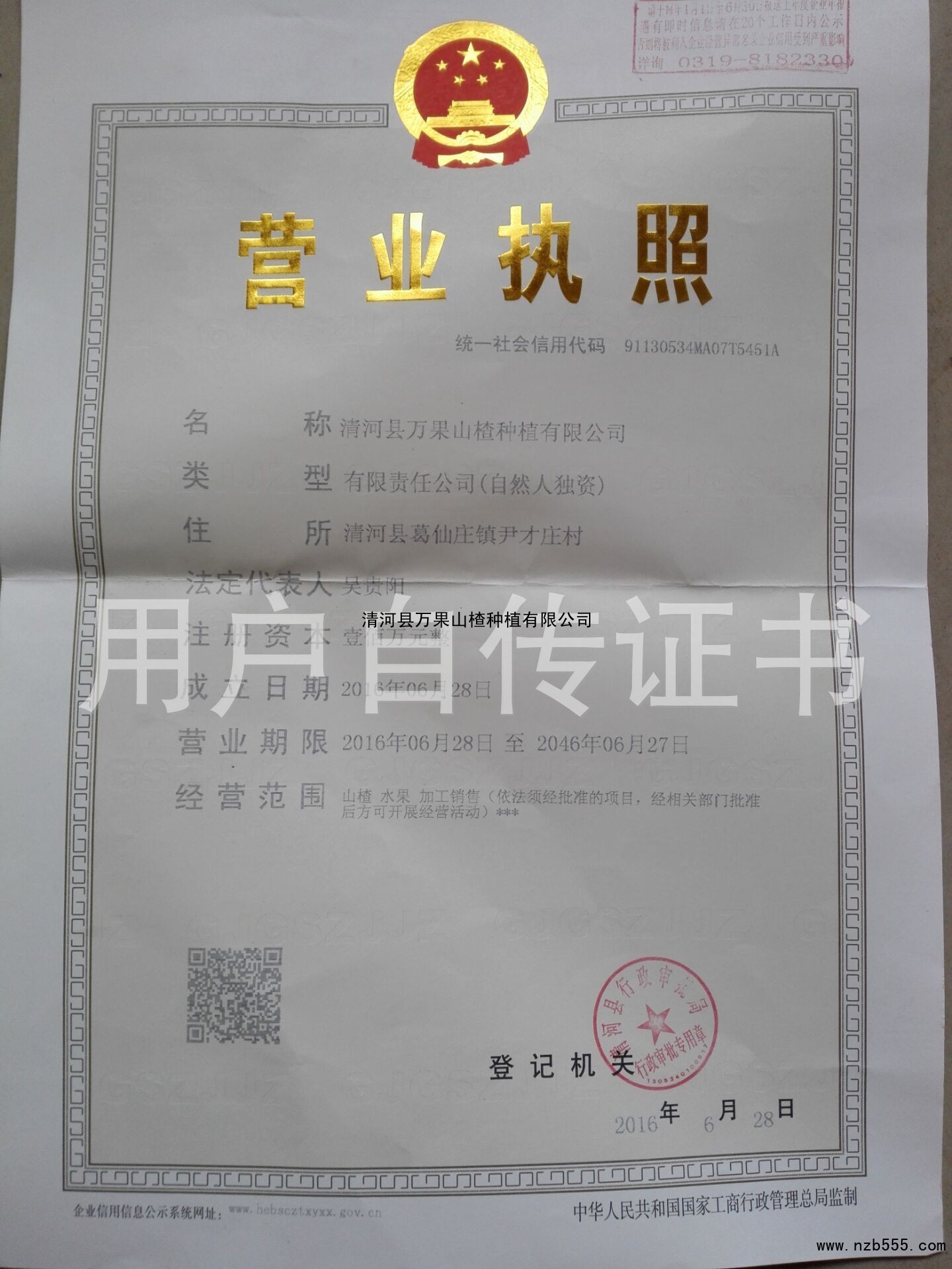 | 發(fā)證機(jī)構(gòu): | 清河縣行政審批局 | 發(fā)證時(shí)間 : | 2016-06-28 |