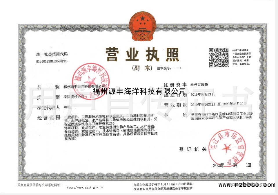 | 發(fā)證機(jī)構(gòu): | 連江縣市場監(jiān)督管理局 | 發(fā)證時間 : | 2020-06-11 |
