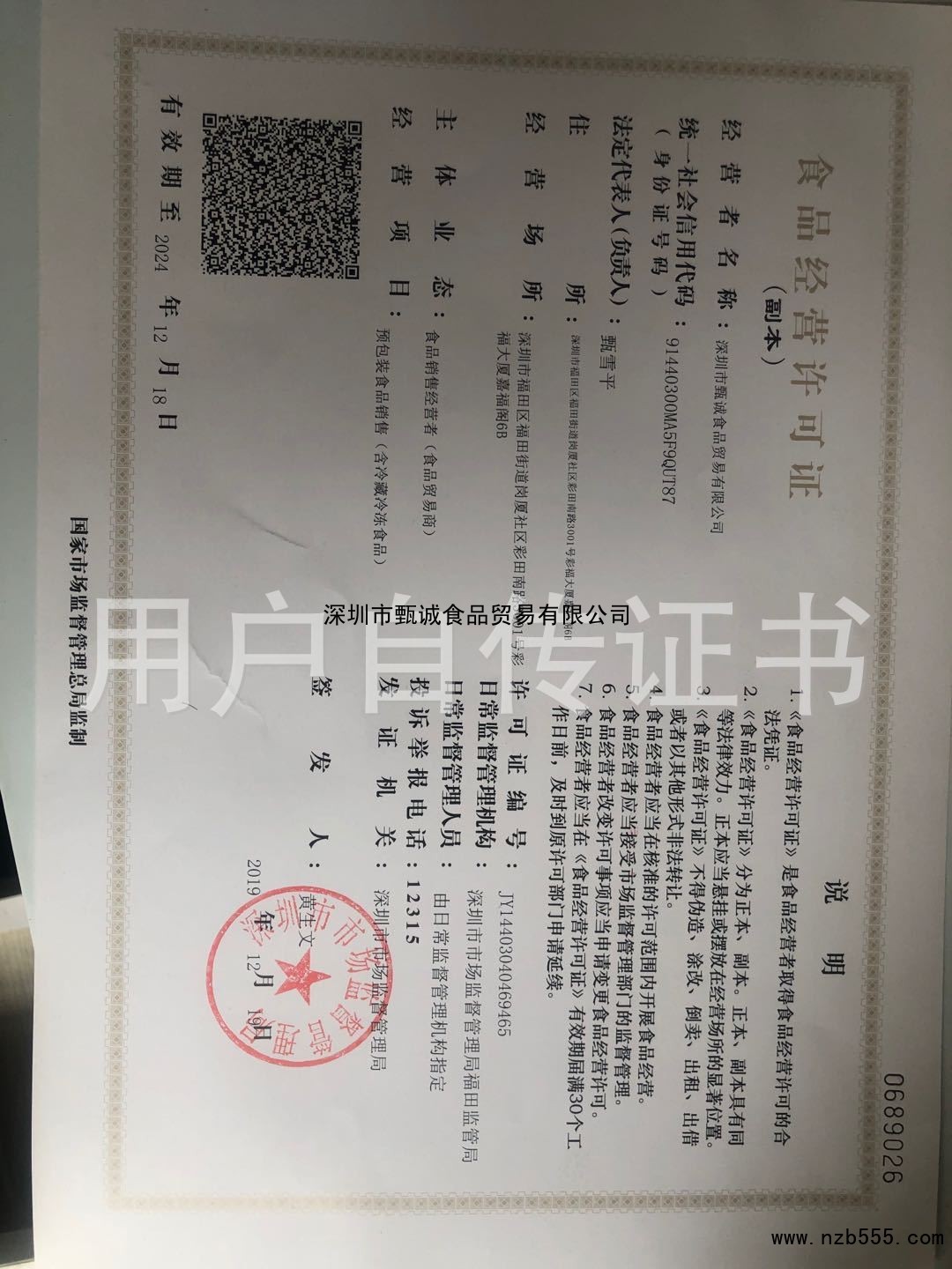 榮譽(yù)資質(zhì) 深圳市甄誠(chéng)食品貿(mào)易有限公司
