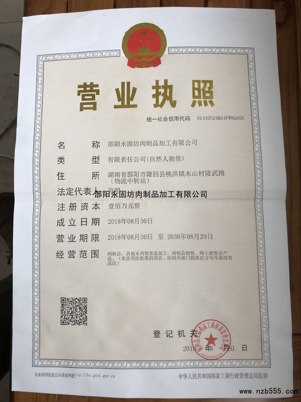 首頁 > 榮譽(yù)資質(zhì) > 邵陽永固坊肉制品加工有限公司
