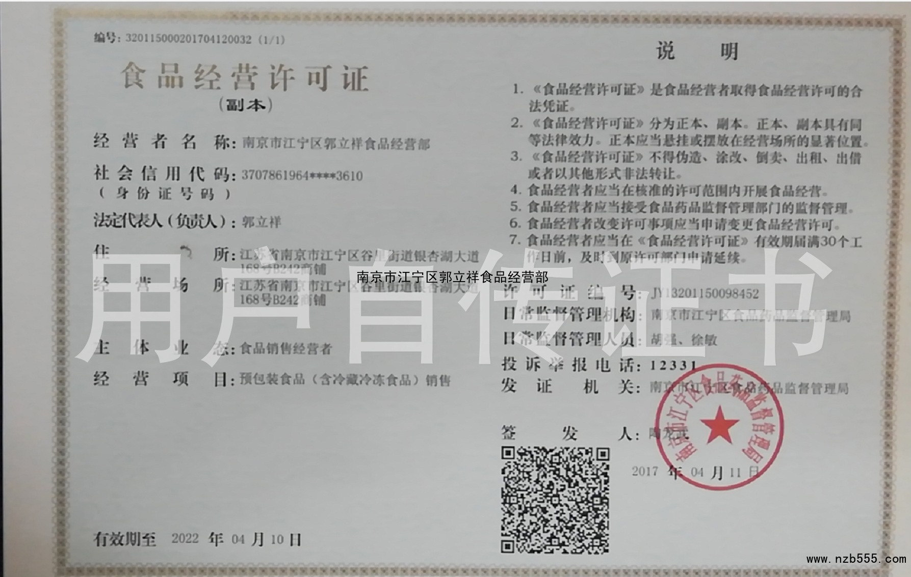 榮譽(yù)資質(zhì) 郭立祥食品經(jīng)營(yíng)部