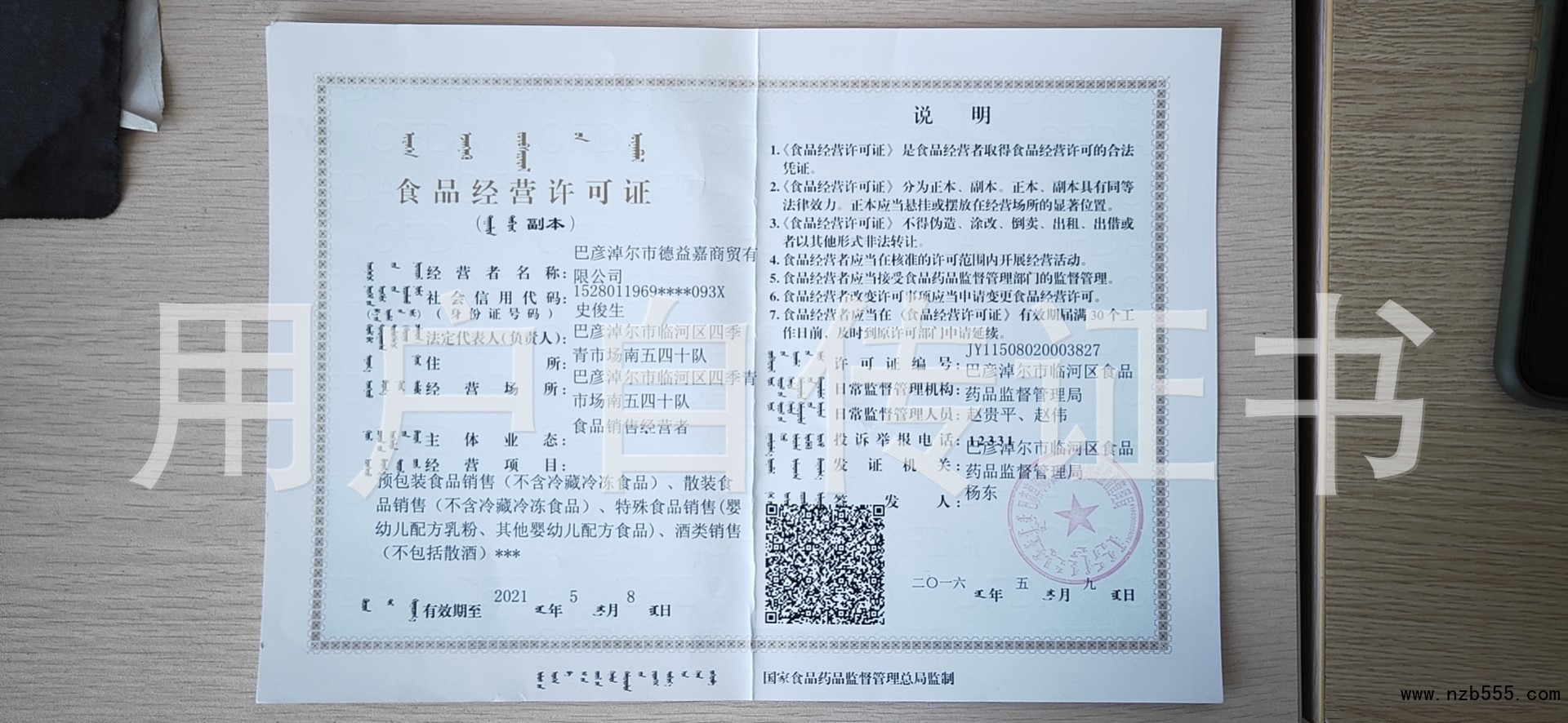 食品經營許可證