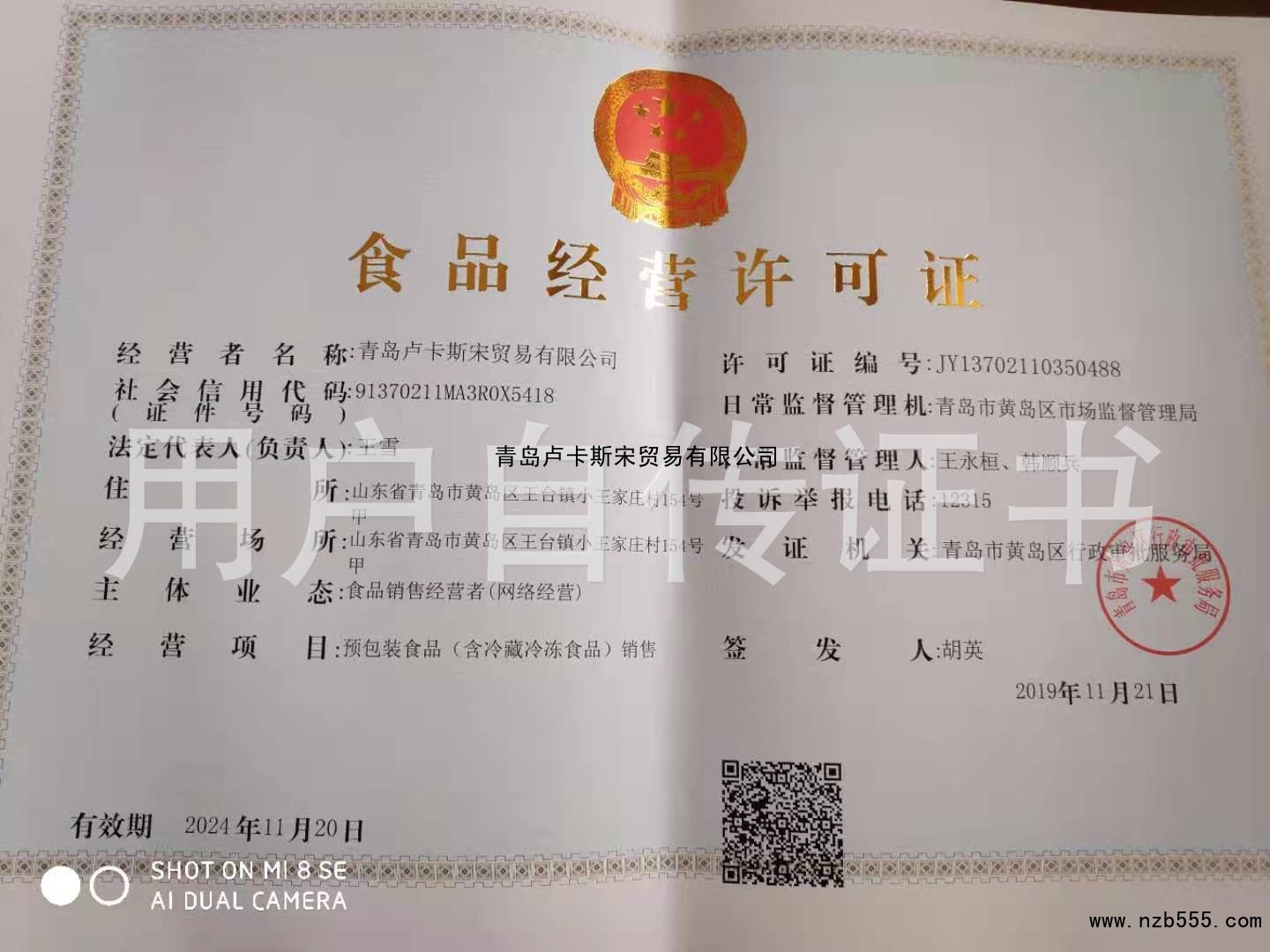 | 發(fā)證機(jī)構(gòu): | 青島市黃島區(qū)行政審批服務(wù)局 | 發(fā)證時(shí)間 : | 2019-11-21 |