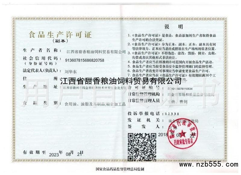 榮譽(yù)資質(zhì) 食品生產(chǎn)許可證(除乳制品、嬰幼兒配方乳粉、酒之外的生產(chǎn)許可證)