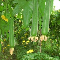 絲瓜(學名:Luffa cylindrica (L.) Roem. )葫蘆科一年生攀援藤本;莖、枝粗,有棱溝,被微柔毛。卷須稍粗壯,被短柔毛,通常2-4歧。葉柄粗,近無毛;葉片三角形或近圓形,通常掌狀5-7裂,裂片三角形上面深綠色,粗,有疣點,下面淺綠色,有短柔毛,脈掌狀,具白色的短柔毛。雌雄同株。雄花通常15-20朵花,生于總狀花序上部;雄蕊通常5,花初開放時稍靠合,后完全分離。雌花單生,花梗長2-10厘米;子房長圓柱狀,有柔毛,柱頭膨大。果實圓柱狀,直或稍彎,表面平滑,通常有深色縱條紋,未熟時肉質,成熟后干燥,里面呈網狀纖維。種子多數,黑色,卵形,平滑,邊緣狹翼狀。花果期夏、秋季。