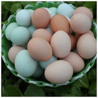 蛋品產(chǎn)自鄂北山地圣龍山周邊,由農(nóng)產(chǎn)每天一次趕集時賣到本公司的收購點,多的一戶十斤、八斤,少的一斤、兩斤,蛋質 新鮮。全鎮(zhèn)一萬二千戶居民約六千戶養(yǎng)有土雞,約有二千戶有余蛋出售至我公司收購點,旺季(清明前后)日收蛋亮三千余斤,近四萬枚產(chǎn)品顏色雜亂不一:有青殼、麻殼、沙殼、白殼、紅殼等。蛋個大小不一,每斤約十一至十二個,色鮮黃、味濃。