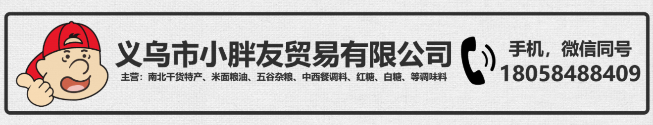 義烏小胖友貿易有點公司,南北干貨、雜糧、紅糖、水產干制品等產品專業生產加工的公司,擁有完整、科學的質量管理體系。小胖友貿易有限公司的誠信、實力和產品質量獲得業界的認可。歡迎各界朋友蒞臨參觀、指導和業務洽 [