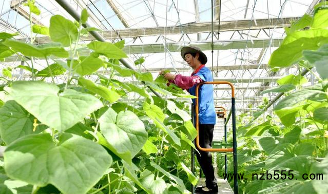 務工人員在甘肅省白銀市白銀區現代農業科技示范園區管護蔬果。