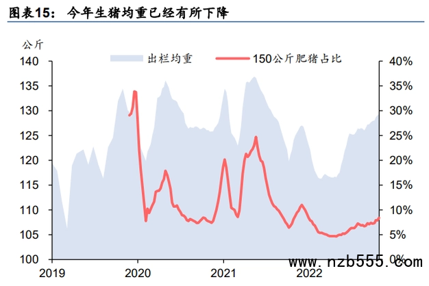 豬價出現首次沖高。幾個原因導致 10 月份豬價沖高,1)10 月份是傳統的節日旺季,在中 秋和國慶假期的需求拉動下,豬肉需求回升;2)養殖戶壓欄比例升高,根據涌益數據,7 月份以來生豬出欄均重迅速升高,或反映了養殖戶持續壓欄;3)供給減少,從屠宰數據看, 9-10 月份檢測屠宰場屠宰量同比下降超過 40%,一方面反映高豬價下屠宰場收豬減緩,另 一方面也說明養殖端供給量有限。 從屠宰數據來看,今年 7-9 月涌益生豬屠宰量日均值為 99888 頭,相較去年同期的 154168 頭減少 35.2%。從生豬均重數據來看,2022 年 6 月-2022 年 10 月,生豬出欄均重快速上 升,但 150 公斤以上肥豬占比上升緩慢。反映出養殖戶壓欄有節制,并非盲目壓欄,出欄 體重大部分在 140 公斤以內的合理范疇。