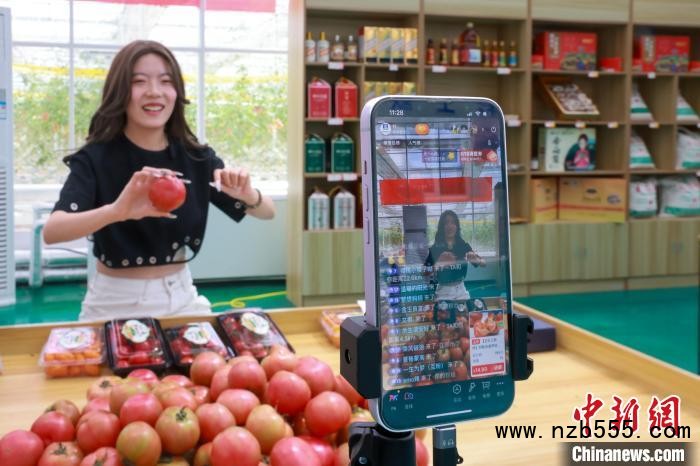 圖為“95后”網(wǎng)絡主播米雪直播帶貨西紅柿。