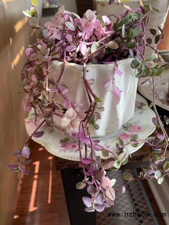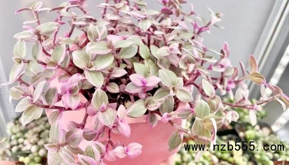 這個是鋪地錦竹草的錦化品種,它和紫露草屬的植物是有較大的親緣關(guān)系的,它有時候也會被叫做“胭脂云”,它最大的特點就是,葉子上有粉紅色、奶油色和綠色相間的條紋。