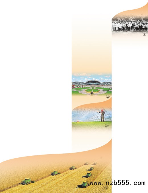 圖①:上世紀六七十年代,全國各地知識青年投身北大荒建設。 資料照片 圖②:七星農機中心。 資料照片 圖③:八五六農場職工在管護水稻苗床。 柏冰冰攝(人民視覺) 圖④:北大荒糧食生產喜獲豐收。 張 偉攝(人民視覺)