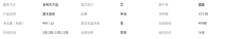 詳細(xì)信息 ![]() 冷凍產(chǎn)品 融化易破損 南方慎拍 不接受退換貨及拒收 介意慎拍 冰凍荔枝入口冰涼,絲絲甜蜜入心。冷凍儲(chǔ)存 解凍后剝開(kāi)即食,每一顆都水潤(rùn)飽滿有彈性,比新鮮荔枝還好吃的凍荔枝!一袋400克,一件25袋