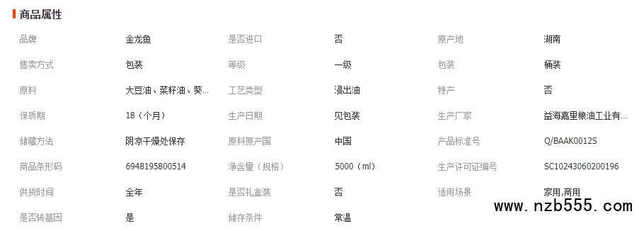 金龍魚食用植物調和油 黃金比例1:1:1 5L*4桶/箱 量大從優