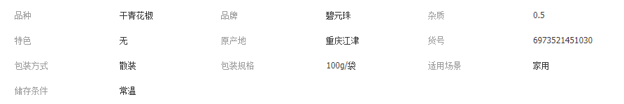 碧元珠重慶江津特產(chǎn)九葉青干花椒100g基地直供藤椒麻椒粒 青花椒