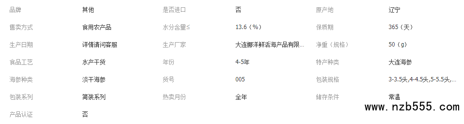 大連淡干海參50g水產海參干貨批發食用廠家一手野生遼參禮盒裝