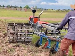 大叔駕駛6輪拖拉機(jī)耕地,一臺(tái)機(jī)器掛了6個(gè)犁片,干活快嗎